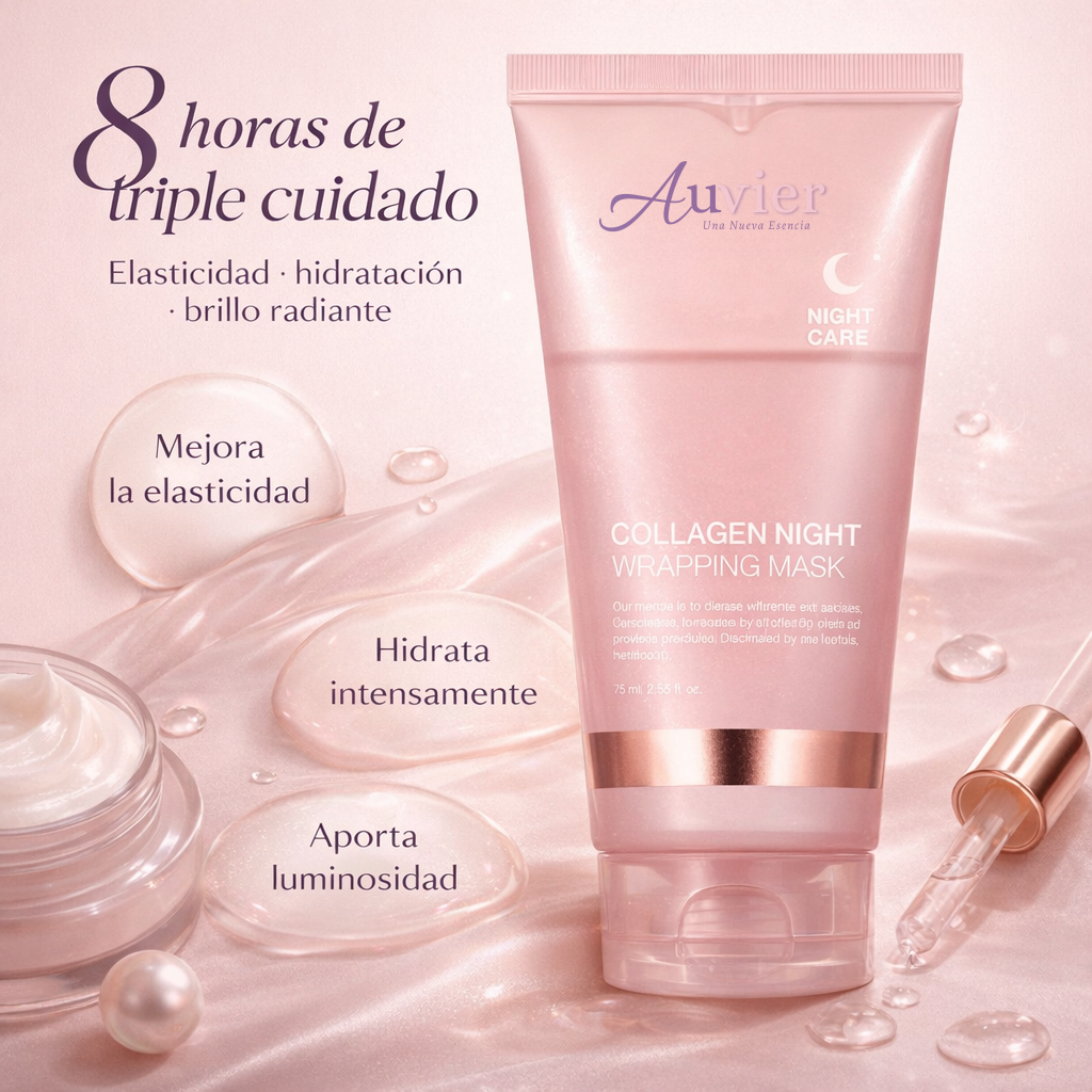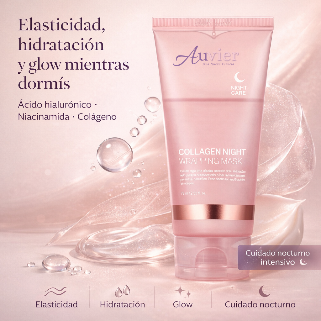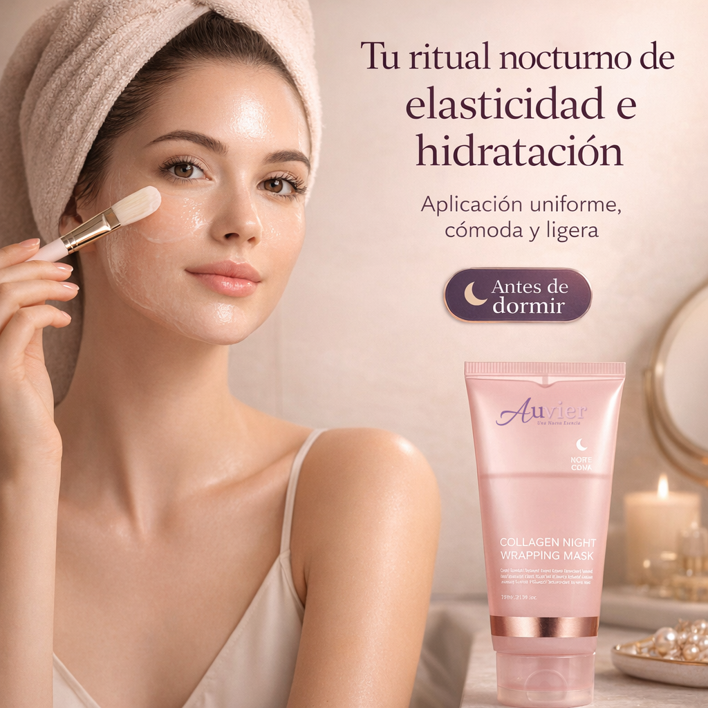 Experimentá una transformación nocturna con la mascarilla de colágeno Auvier, diseñada para cuidar y proteger la elasticidad de tu piel mientras dormís. Esta mascarilla facial peel-off forma una película de colágeno que acompaña la piel durante la noche para brindar un cuidado intensivo orientado a la hidratación, la elasticidad y la luminosidad.